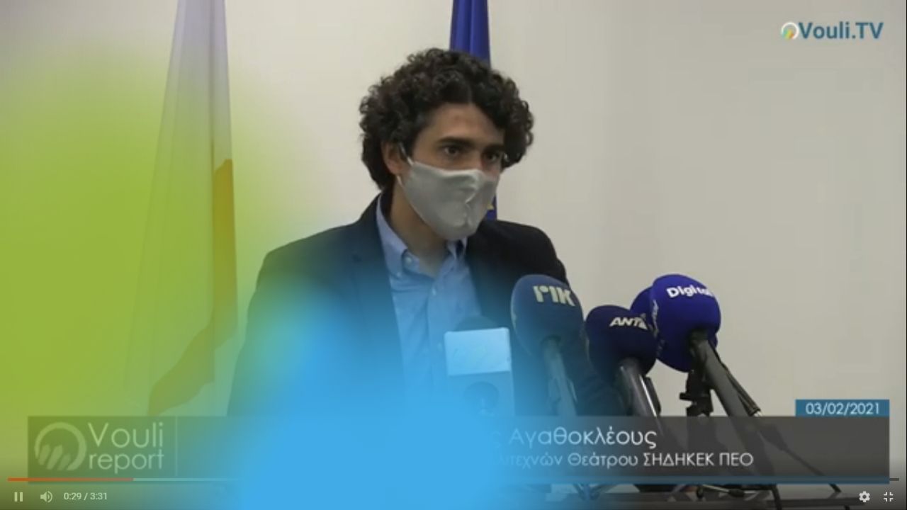 Φιλοξενούμενοι του Χάρη Θεραπή οι Αντρέας Τσέλεπος (πρόεδρος Ε.Η.Κ) και Προκόπης Αγαθοκλέους (γραμματέας της Κλαδικής Καλλιτεχνών της ΣΗΔΗΚΕΚ ΠΕΟ) σε μία συζήτηση για το πλήγμα που δέχεται ο καλλιτεχνικός κόσμος λόγω πανδημίας του κορωνοϊού.