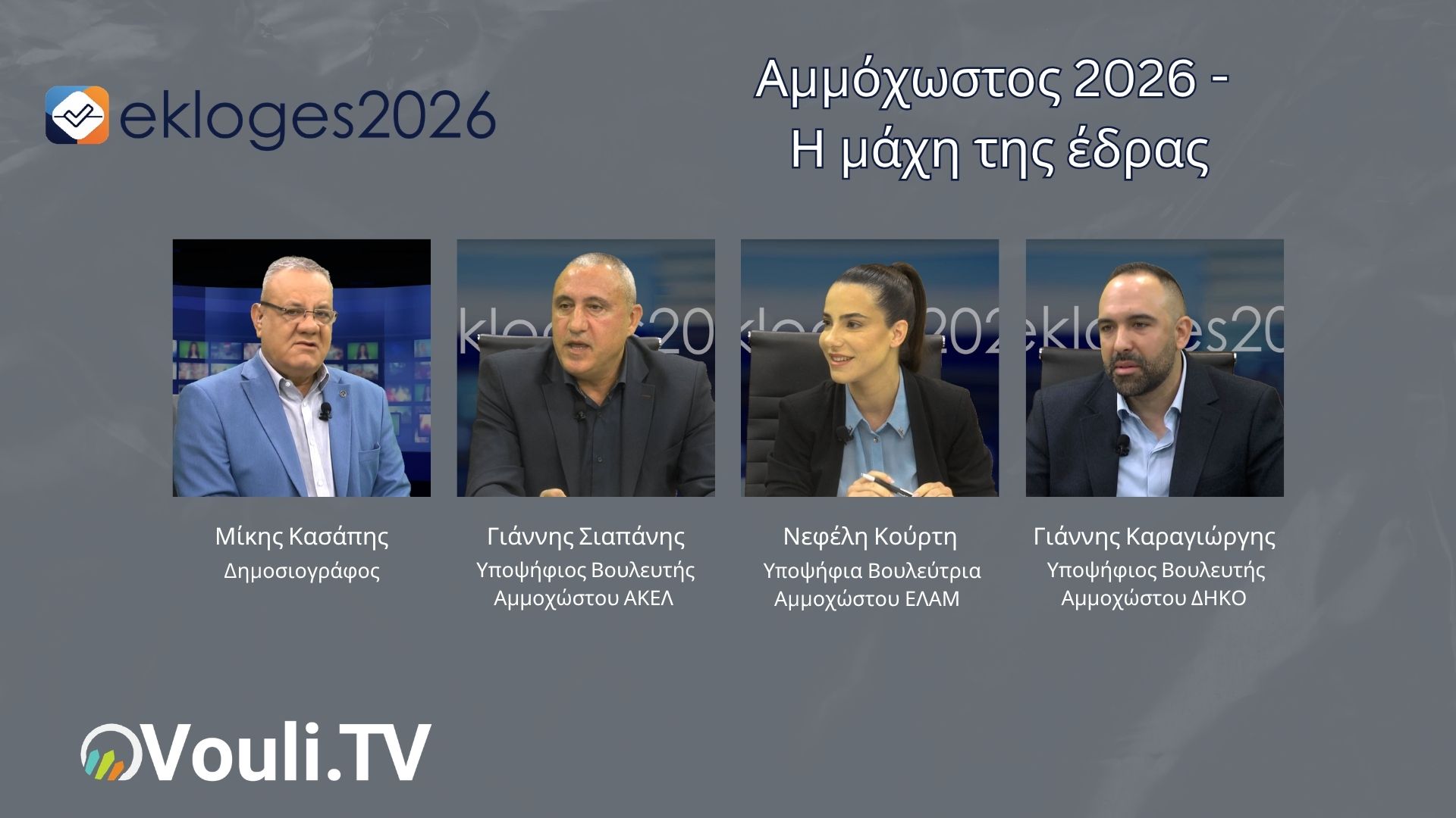 EKLOGES20262 weeks agoΕΚΛΟΓΕΣ 2026 ΑΜΜΟΧΩΣΤΟΣ 2026 – Η μάχη της έδρας | Τρίτη 24/03 στις 7μμ