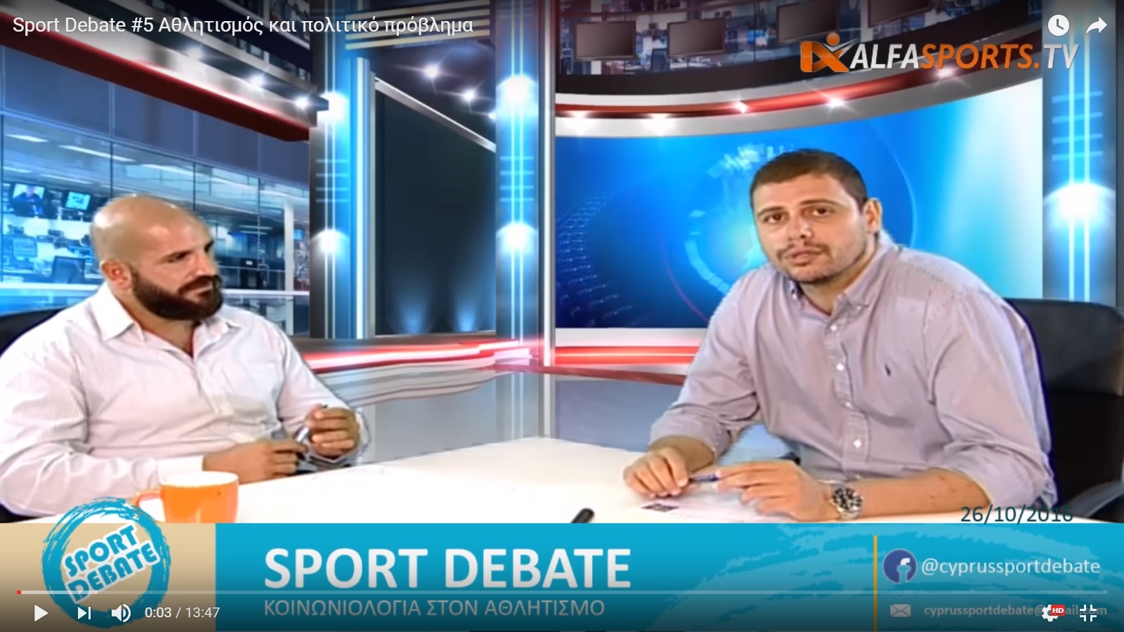 Στα πλαίσια της εβδομαδιαίας τηλεοπτικής κπομπής “Sport Debate”, παραγωγής Alfasports.TV και επιμέλειας Ανδρέα Θεμιστοκλέους, συζητήθηκε το θέμα “Αθλητισμός και Κυπριακό” ως όχημα βιήθειας προς την επίλυση...