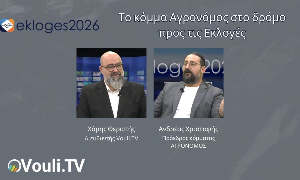 Ο πρόεδρος του κόμματος ΑΓΡΟΝΟΜΟΣ, Ανδρέας Χριστοφή, φιλοξενείται στην εκπομπή #ekloges2026 με τον Χάρη Θεραπή, σε μια συζήτηση με πολιτικό βάθος αλλά και προσωπικές αποκαλύψεις. Με φόντο...