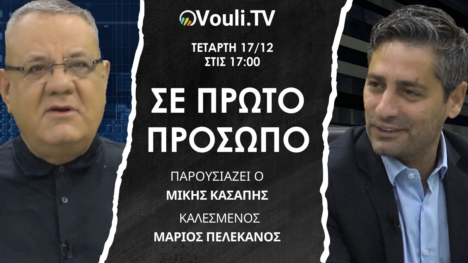Ζωντανά, Αποκλειστικά και σε Ανοικτή ζώνη από την τηλεόραση του Vouli.TV, στο YouTube και το Facebook.