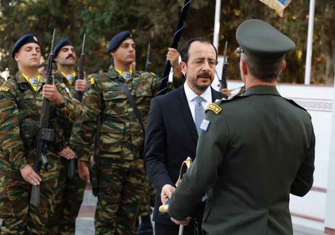 Στον χαιρετισμό του, ο Πρόεδρος Χριστοδουλίδης ανέφερε ότι «με αισθήματα βαθύτατου σεβασμού και εθνικής υπερηφάνειας» καλωσορίζει τους παρευρισκόμενους στο Προεδρικό Μέγαρο, σε μια σεμνή τελετή αφιερωμένη στην Ελληνική Δύναμη Κύπρου, στο πλαίσιο της διπλής εορτής των Εισοδίων της Θεοτόκου και των Ελληνικών Ενόπλων Δυνάμεων.