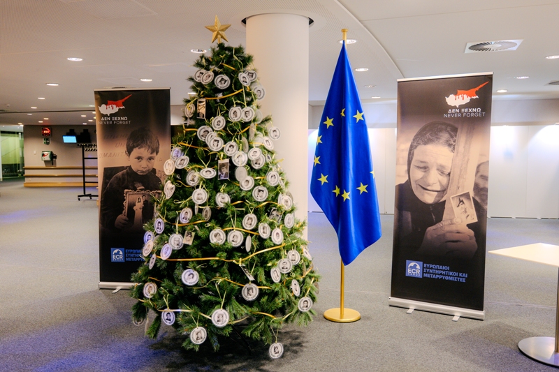 Σε μια από τις πλέον πολυσύχναστες αίθουσες του Ευρωπαϊκού Κοινοβουλίου, στήθηκε και πλαισιώθηκε για πρώτη φορά με τις φωτογραφίες των αγνοουμένων μας και κίτρινες κορδέλες το Χριστουγεννιάτικο Δέντρο Μνήμης, ενώ φωτογραφίες από τον πολυετή αγώνα των συγγενών τους για να μάθουν τι απέγιναν τα αγαπημένα τους πρόσωπα τοποθετήθηκαν στους τείχους…