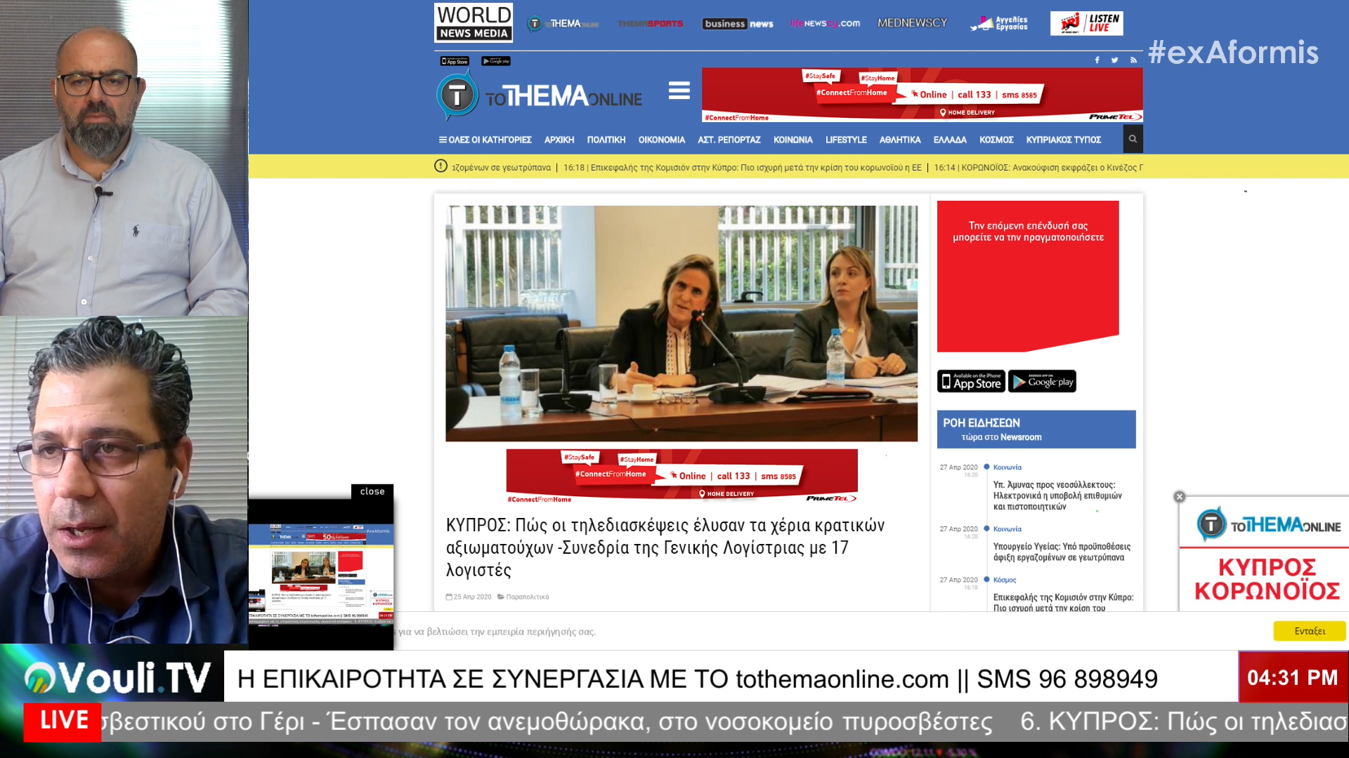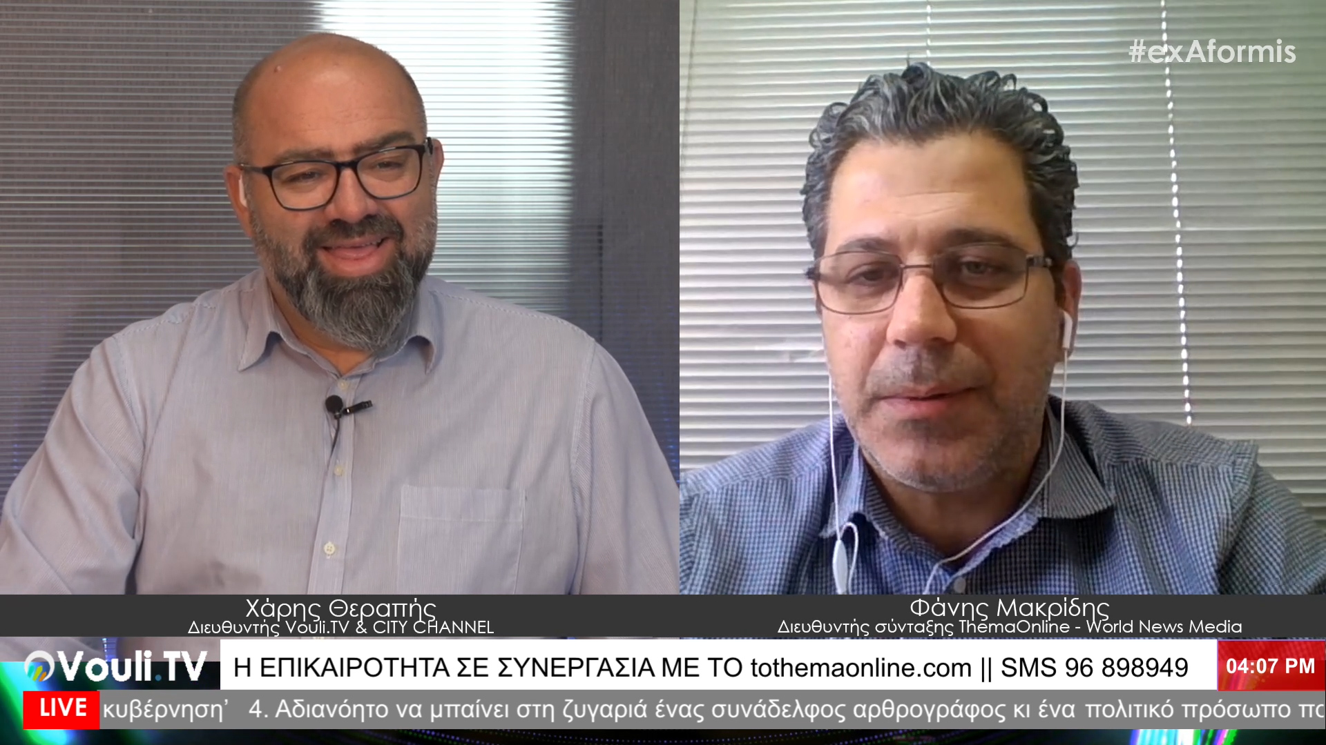 Όλο το φάσμα της επικαιρότητας αναλύθηκε από τον διευθυντή σύνταξης του ThemaOnline (World News Media), Φάνη Μακρίδη, στην εκπομπή «εξ Αφορμής» του Vouli.TV, με οικοδεσπότη τον...