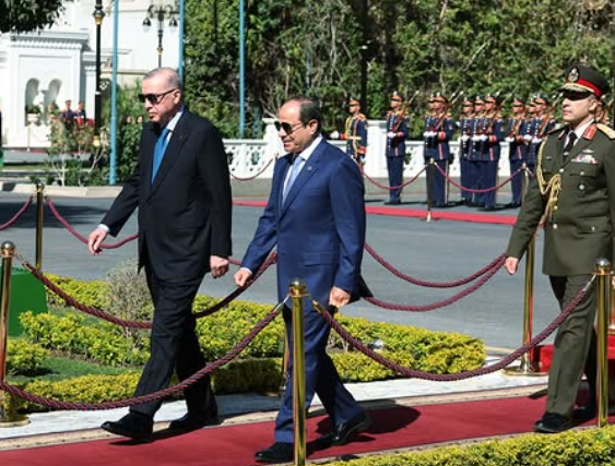 Εντυπωσιακή και υψηλού συμβολισμού υπήρξε η υποδοχή που επιφύλαξε ο Αιγύπτιος Πρόεδρος Αμπντέλ Φατάχ Αλ Σίσι στον Τούρκο ομόλογό του Ρετζέπ Ταγίπ Ερντογάν, ο οποίος στις 4 Φεβρουαρίου πραγματοποίησε επίσημη επίσκεψη στην Αίγυπτο, προκειμένου να συμμετάσχει στη δεύτερη συνεδρίαση του Συμβουλίου Στρατηγικής Συνεργασίας Υψηλού Επιπέδου μεταξύ των δύο χωρών. Στο πλαίσιο της επίσκεψης, οι δρόμοι του Καΐρου κοσμήθηκαν με αφίσες των δύο Προέδρων, ενώ η αυτοκινητοπομπή που μετέφερε τον Τούρκο Πρόεδρο χαρακτηρίστηκε από ιδιαίτερη μεγαλοπρέπεια. Ανάλογης επισημότητας ήταν και η υποδοχή του στο Προεδρικό Μέγαρο, όπου πραγματοποιήθηκαν κανονιοβολισμοί. Από την πλευρά του, ο Ερντογάν προσέφερε στον Σίσι μία λιμουζίνα Togg T10X, τουρκικής σχεδίασης και κατασκευής, μια πρακτική που ακολουθεί σε επισκέψεις ιδιαίτερης σημασίας για την Τουρκία.